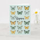 This design shows a calm grid of about fifteen stylized butterflies floating on a muted blue‑green background, arranged neatly like they’re keeping close company. Soft sage and mint tones mix with warm golden yellow, creamy white, and touches of pale blue, giving the scene a gentle, affectionate mood ❤️. Fine dark outlines trace each wing, with tiny white dots and thin vein lines that make the butterflies look delicate and attentive to one another. Near the center, a flowing line of text crosses over the pattern, as if slipping a quiet note into the middle of a shared moment. The lettering is set in a graceful, cursive-like style and stands out against the cool backdrop, reading clearly without overpowering the wings. The even, soft lighting suggests a subtle translucence, like the butterflies are lit from within, creating a tender, close-knit feeling. Small variations in markings and color intensity make each butterfly feel like its own character while still belonging to the group 🌼. The central text sits horizontally across the middle, with butterflies above and below forming tidy rows around it.