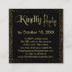 Using two distinctive fonts, I've created graphics for the pieces in this collection and embellished them with a faux-metallic gold effect for a festive vibe. In this piece, an elaborate, formal font was used to render "Kindly" and the whimsical, handwritten one reads "Reply". All text was placed over a black rectangle which overlays a black background. Gold confetti and a subtle black ombre overlay complete the border effect. Use the template fields to add your own details for routing the QR code and including additional, custom information for your guests. And you may change the background to any color you like. // 130 + 131 //