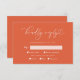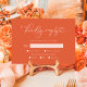 Request your guests' responses with this elegant and modern Verona Sunset RSVP card. The warm orange hue and graceful calligraphy script, featuring a delicate heart detail, create a sophisticated and inviting feel. Guests can reply using the traditional mail-in method (with meal choice options) or quickly respond online by scanning the QR code on the back. Customize with your wedding details.