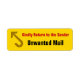 This label design features the messages "Kindly Return to the Sender" and "Unwanted Mail", along with an arrow shape. It could be used to indicate that received postal mail has been delivered to the wrong address or to an unknown recipient, and should be returned to the sender. [~Z0000168]