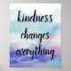 kindness changes everything quote on blue watercolor paint design for wall art decor in home or office. Art copyright Ann Powell all rights reserved.