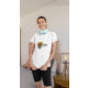 Women's t-shirt with Positive message features a bee and sunflower with customizable "kindness matters" text