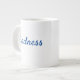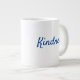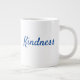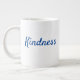 This mug shows the word Kindness printed on it with blue text. So it tells others that you support kindness. And it reminds them to also act with kindness.
