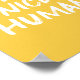 An inspirational typography quote art print that says Be a Nice Human in a cheerful yellow and white design.