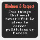 Funny and simple but true - "Kindness & Respect...Two things that must never EVER be given to career politicians or Karens"