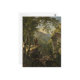 A 17th century painting depicting explorers in the Catskill mountains. The men are looking down into a ravine at a flowing river. Artwork by Asher Durand.