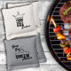 King and Queen personalized cornhole bags. The set comprises 2 black print designs both of which feature a doodle style crown. (please browse my store for white print to use on darker color bags). One set is lettered with Cornhole King [name 1] and the other is lettered with Bean Bag Queen [name 2]. Perfect for couples, boy v girls teams, engagement party games, bride and groom wedding garden games etc.
