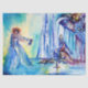 Colorful ,whimsical ,romantic, symbolist contemporary watercolor painting in soft blue,pink ,red, purple, violet, white colors for a spiritual,mystic Celtic legend by Alessandro Lumini 1989 .This cool and artistic design is also a beautiful gift for special occasions ,birthdays ,weddings,Christmas, holiday,Valentine's Day,Mardi Gras ( Fat Tuesday ) season. ----Vivien , this mysterious female gave Arthur his sword, Excalibur. She stole Lancelot when he was a child and cured him when he went mad. She may be a Celtic lake divinity in origin, perhaps of the same kind as the Gwagged Annwn - lake fairies in modern Welsh folklore. Vivien may very well have been the Lady of the Lake in the Arthurian Legends and stories. She, sometimes called Nineve, Nimue, Niniane, etc., is best known as the woman who sealed Merlin in a cave or a tree.