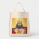 The printing came out very well, better than I had anticipated. The natural color fabric is sturdy with strong seams and comfortable handles. This tote fits easily over my shoulder. As it is filled, the bottom flattens out--very cool! I would buy this product again. This grocery tote holds a lot of groceries! The image quality was very good. The colors were a little darker than I had expected. The darkness may have been due to printing on a natural color fabric rather than on white. The cat design is attractively centered on the tote. The spirit of the design is very lively, just as it appears on the Zazzle website.