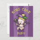 A cute Mardi Gras King Cake Baby in a jester's cap, holding a fleur de-lis and eye mask. Purple, green & gold art, t-shirts, sweats, cards, gifts.