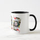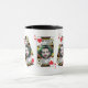 A black coffee mug with a custom photo collage and the text "Treat Dad Like Royalty," sitting on a wooden table.
