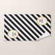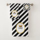 Elegant towel set with beautiful King Dad's crown with diagonal black and white stripes on the background. Text can be personalized. Chic modern towl set.