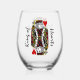 King of Hearts Design Stemless Wine Glass with customizable text on both sides.