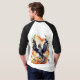 I bought the Men's Basic 3/4 Sleeve Raglan T-Shirt, White/Navy. It arrived on time for a gift and is of a great quality and fits perfectly! So cute! Zazzle has done it again! The printing was clear and filled in solidly.