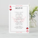 King and queen of hearts playing card wedding reception menu. Personalize it with your event details. Great for a Las Vegas / poker themed celebration.