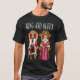 My 11 yo wore adult XL (5’7” 165#). The 8yo is small framed. She wore adult small and tied it in the back. Grandma wore adult large with long sleeve shirt underneath. Tall girl adult medium. Dark haired male adult large. Good quality dark Heather gray, Gildan brand shirt. -it was next up from basic choice and cost about $20 per shirt. Not too thick or thin. Washed and dried well, no major shrinkage. Not see-through. Can wear a bra under it fine. Screen print is just as shown and well done, front and back.