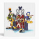 Check out this iconic illustration of Sora sitting atop a throne with a crown on his head and keyblad in hand, with Donald Duck and Goofy standing guard beside him.