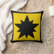 "Or, a mullet of five greater and five lesser points within a bordure sable." Populace badge for the Kingdom of Ansteorra (SCA). Back of pillow is a medieval pattern in coordinating colors.