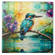 Kingfisher perched over water Wildflowers Ceramic Tile