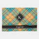 Plaid design in kingfisher palette colors. Seamless pattern. Custom text and monogram.