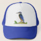 A color pencil portrait of a brilliant blue Kingfisher bird adorns this hat!