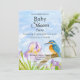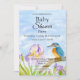 This baby shower invitation showcases a hand-painted watercolor of a vibrant kingfisher resting among softly flowing purple and white irises. Created in a loose, expressive style, the peaceful nature scene reflects wisdom, joy, and quiet strength—beautifully honoring six decades of a life richly lived and deeply cherished.