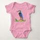 A color pencil portrait of a brilliant blue Kingfisher bird adorns this baby girl's bodysuit! Customize by changing the background color to suit yourself!