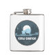 Well made flask, a little better than I had expected. Flask came in clear plastic box which gave it a nice presentation when I took it out of the zazzle packaging. Image is not printed on flask but on sticker. Don't know how this will hold up I haven't used it yet. This would make a Great gift! I plan to purchase more for friends! Cheers. I thought a little brighter than computer. Very crisp, writing wasn't