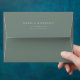 Classic and elegant sage green colored envelopes with printed return address.