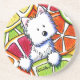 Sandstone coaster featuring Westie Terrier dog breed art by children's book Illustrator, Kim Niles.