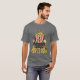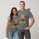 My 11 yo wore adult XL (5’7” 165#). The 8yo is small framed. She wore adult small and tied it in the back. Grandma wore adult large with long sleeve shirt underneath. Tall girl adult medium. Dark haired male adult large. Good quality dark Heather gray, Gildan brand shirt. -it was next up from basic choice and cost about $20 per shirt. Not too thick or thin. Washed and dried well, no major shrinkage. Not see-through. Can wear a bra under it fine. Screen print is just as shown and well done, front and back.