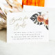 This books for baby enclosure card features boho dry tropical palm leaves and terracotta accents paired with an elegant handwritten script font. This card is perfect for your boho, tropical, and beach baby shower event.