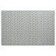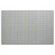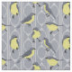 This patterned fabric features illustrations of a bird that recovered from the brink of extinction, Kirtland's Warbler. The yellow and gray birds are depicted against a light gray and white patterned background.
