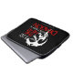 The sleeve is made of nice feeling material and seems very durable. I'm not sure how easy it'll be to clean, but the construction seems sound and the fabric is quick thick. I also like the double zipper. The printing is lovely and appears durable. The white on black contrast is nice, and the design very elegant.