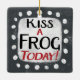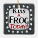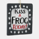 "Kiss A Frog Today" is a cute text design featuring a white accent shape surrounded by cute white polka dots.