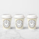 These festive party cups are the perfect way serve drinks at your New Years Eve party. A white cup with gold confetti and a Roman numeral clock with text that says "Kiss me at midnight."