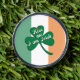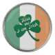 Kiss me I am Irish text design with shamrock and lips decoration on Irish flag background