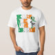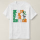 Patriotic fun Irish flag colors of green, white and orange and text typography design with kiss me I'm Irish text and funny Skull wearing a silly hat with a shamrock.