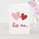 This Valentine's Day card shows a simple white background with two hearts near the top center. The left heart is a light pink with a soft shine, and it points a red arrow toward the heart on the right. The right heart is a deeper red, and each heart has a small dot detail—one red dot near the arrow and one white dot on the red heart. Under the hearts, the words “Kiss me...” appear in red, written in a flowing, handwritten-style font near the lower middle of the card. The layout feels direct and sweet, like someone being brave enough to say what they want ❤️. It’s a meaningful card to give when you want to show affection without a lot of extra fuss, whether it’s for a partner or a crush 🥰.