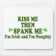 Irish T-Shirts. St Patrick's Day T-Shirt. Kiss Me Then Spank Me T-Shirt. Buy this Kiss Me Then Spank Me I'm Irish and I'm Naughty T Shirt design. Great Irish T-Shirt design can be worn on St Patrick's Day or any other day of the year. Descriptive Words: St Patrick's Day, Saint Patrick, Irish, St Paddy's Day, Irish, Irish Drinking, My Lucky Charms, Shamrocks, Boston, Chicago, 4 leaf clover, Pog Mo Thoin, Ireland, Hooligan, Leprechaun, Slainte, Irish Luck