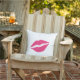 Bold, bright, pink lips accent this cute outdoor pillow, making it a sweet accent on the porch, deck, patio or by the pool.
