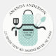 Cute mint green polka dot apron with kitchen tools unique round address label sticker.