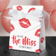 Get ready to kiss the miss goodbye with this fun bachelorette party favor box. Designed in classic red, black and white, with a bold red lip, this box is a great choice for women having their pre-wedding celebration near Valentine's day. Personalize it with the bride's name for a custom keepsake!