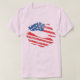 A bold and graphic t-shirt design featuring a stylized, distressed American flag shaped like a passionate kiss. The flag is fragmented and uneven, with visible texture, evoking a sense of imperfection and raw emotion. The design celebrates the USA with a unique and artistic twist.