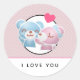 Kissing Bears Pattern on Polka Dots Classic Round Sticker