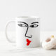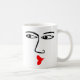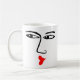 A mug with a furtive, pouty kissing face. The face is repeated on both sides.