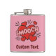 Well made flask, a little better than I had expected. Flask came in clear plastic box which gave it a nice presentation when I took it out of the zazzle packaging. Image is not printed on flask but on sticker. Don't know how this will hold up I haven't used it yet. This would make a Great gift! I plan to purchase more for friends! Cheers. I thought a little brighter than computer. Very crisp, writing wasn't