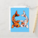 Postcard features illustration of two kissing koi fish in bold shades of orange, black, white, and pool blue. Customize with your own text, change the background color, or leave as-is. (just click the 'customize' button under the main image to do so)