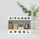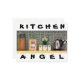 Kitchen counter with kettle and cups and flowers with a kitchen message