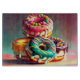 Kitchen Baking Donuts Cutting Board. Abstract fantasy picture food of colorful fantasy art Donuts cutting board. Colorful pink Donuts frosting that will match nicely with most kitchen themes. Loads of sweet Donuts treats. Great gift idea for a housewarming gift. You can change style and types of cutting boards.